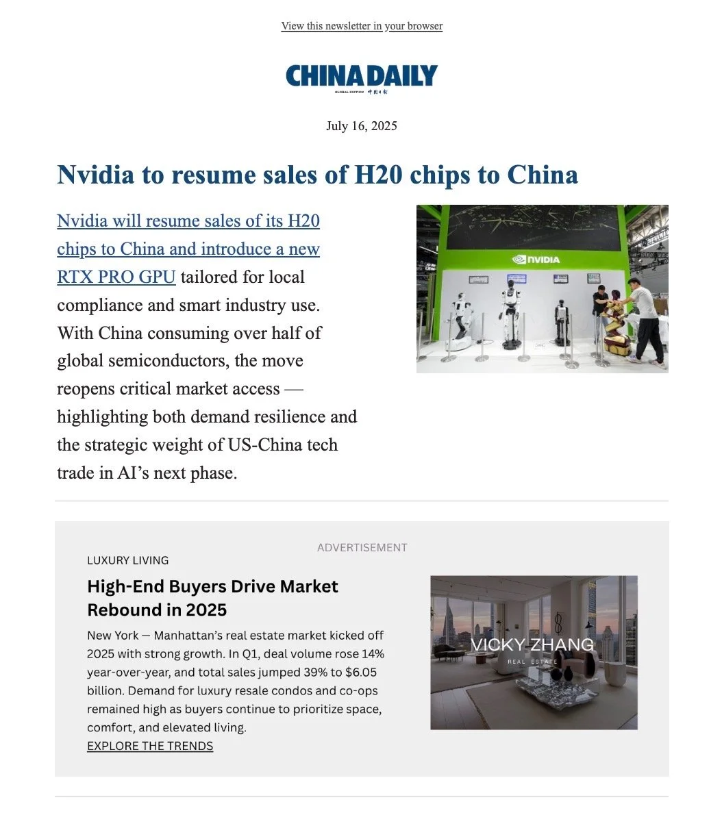 We’re proud to share that Vicky Zhang, Head of Pan-Asia Luxury Sales at Keller Williams NYC, was recently featured in the July 16th edition of China Daily—a global publication renowned for its insights on international business, finance, and culture.